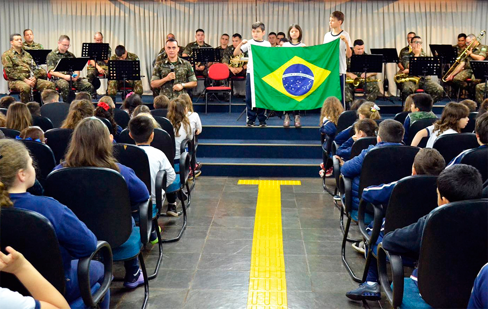 A Banda de Música do 34º BIMec, sob a Regência do 1º Tenente Nivaldo se apresentou aos alunos.