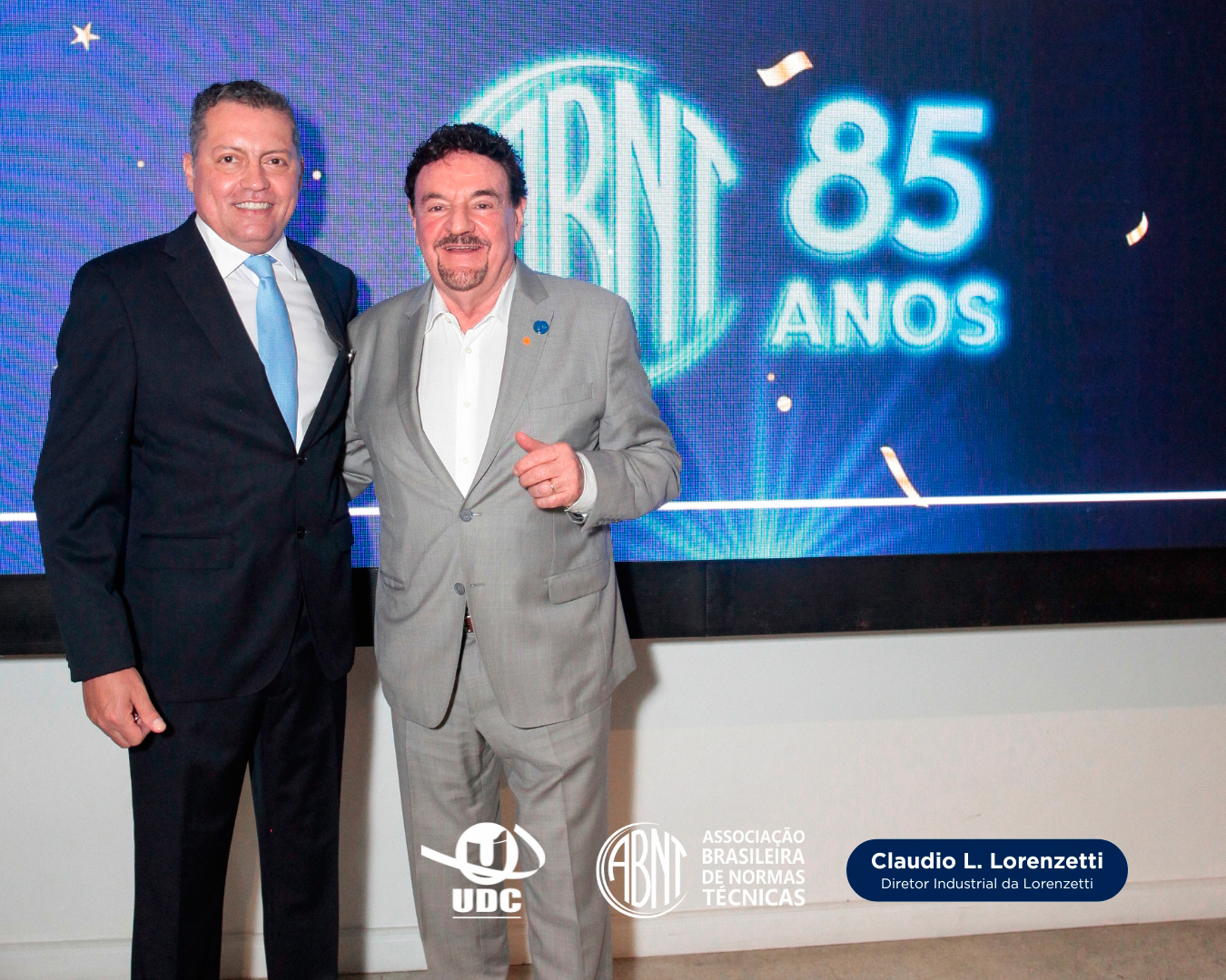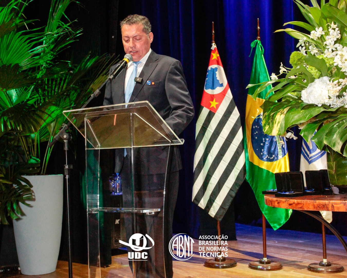 O Diretor do Grupo UDC e Pró-Reitor, Prof. Dr. Fábio Prado, ressaltou a trajetória do Grupo Dinâmica de educação, que hoje reúne mais de 1.200 colaboradores. “É uma honra estar e ser homenageado nesta noite especial de comemoração aos 85 anos da ABNT, juntamente com pessoas tão importantes. Conheci também o engenheiro Cláudio Lorenzetti, de uma grande empresa que possui mais de 4.500 funcionários, o qual o avô, também engenheiro, se formou em Roma, onde tive a honra de concluir meu doutorado. Fico orgulhoso em estar aqui representando os 2 Centros Universitários da UDC e os colégios do grupo, e divido esta homenagem com toda a nossa equipe”.