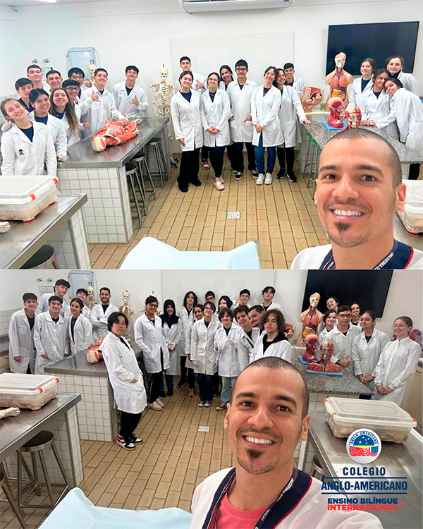 No Colégio Anglo-Americano, entre as peças anatômicas preservadas e sintéticas, as peças pedagógicas do laboratório recebem um tratamento especial que permite a manipulação segura, garantindo que todos os estudantes tenham acesso a cada detalhe das estruturas anatômicas e possam aprofundar ainda mais o conteúdo teórico dado pelo professor em sala.