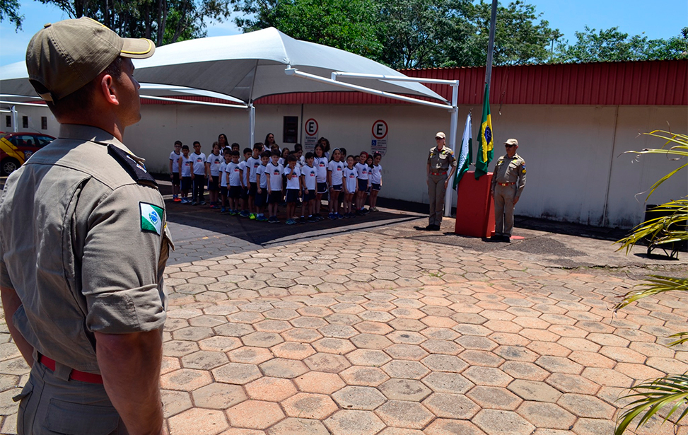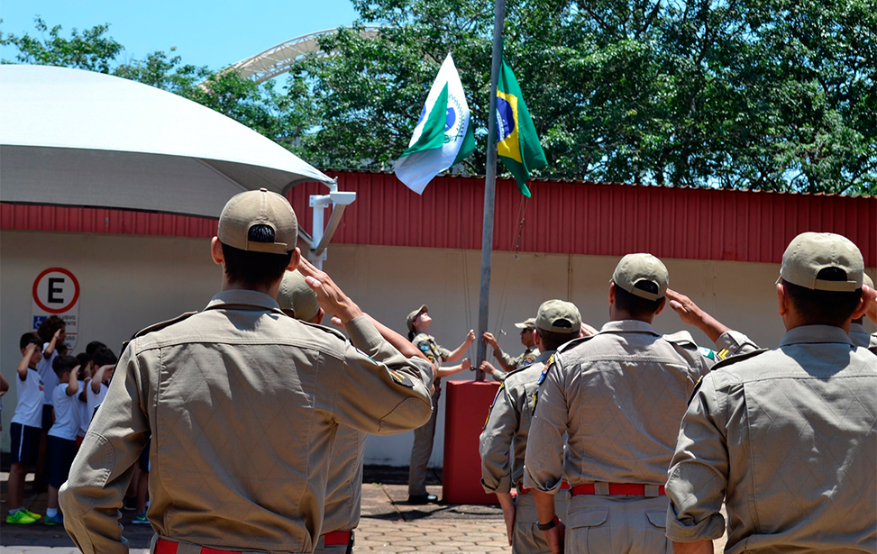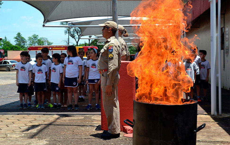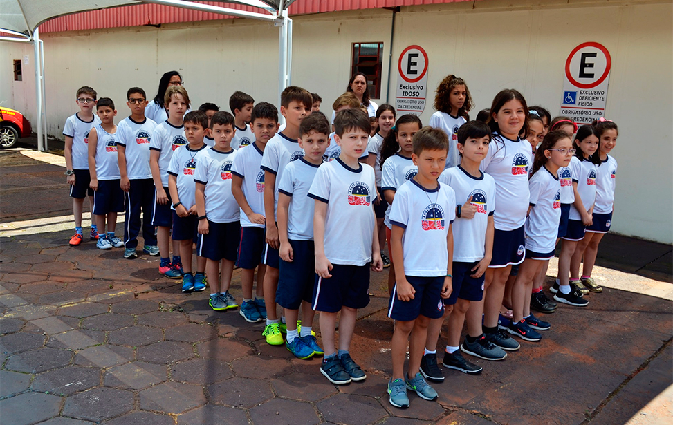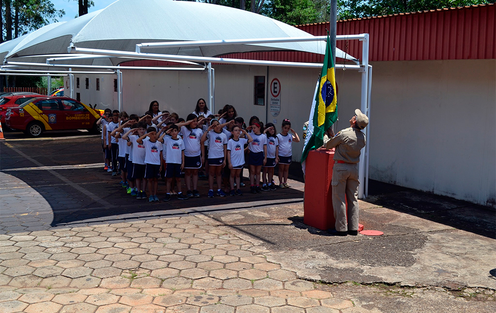 Os alunos do colégio Anglo Americano estiveram participando junto ao Corpo de Bombeiros da Vila A, de um momento cívico, em homenagem ao Dia da Bandeira.