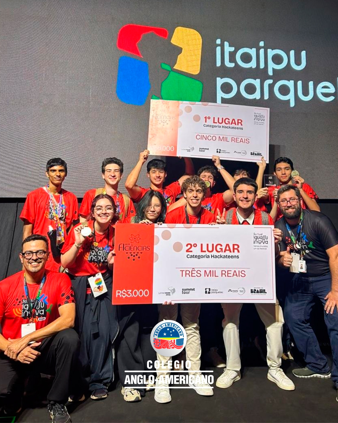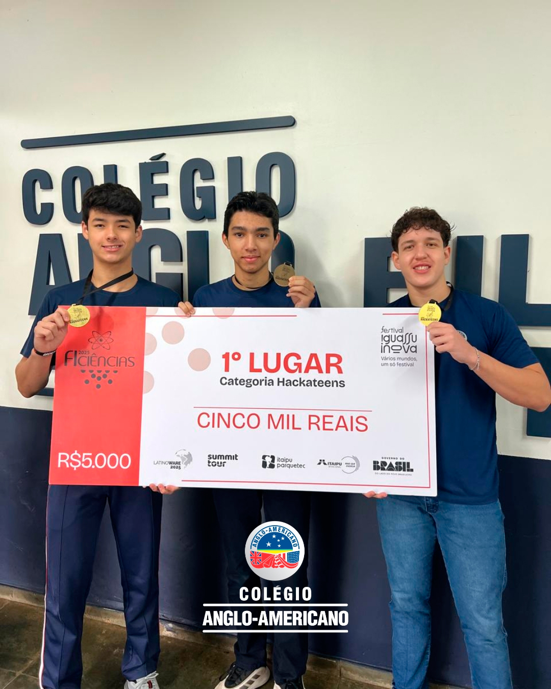 O Colégio Anglo-Americano celebra com imenso orgulho a conquista dos nossos alunos no FICiências, evento sediado pela Itaipu Parquetec, que valoriza a inovação e o protagonismo jovem na ciência e tecnologia.