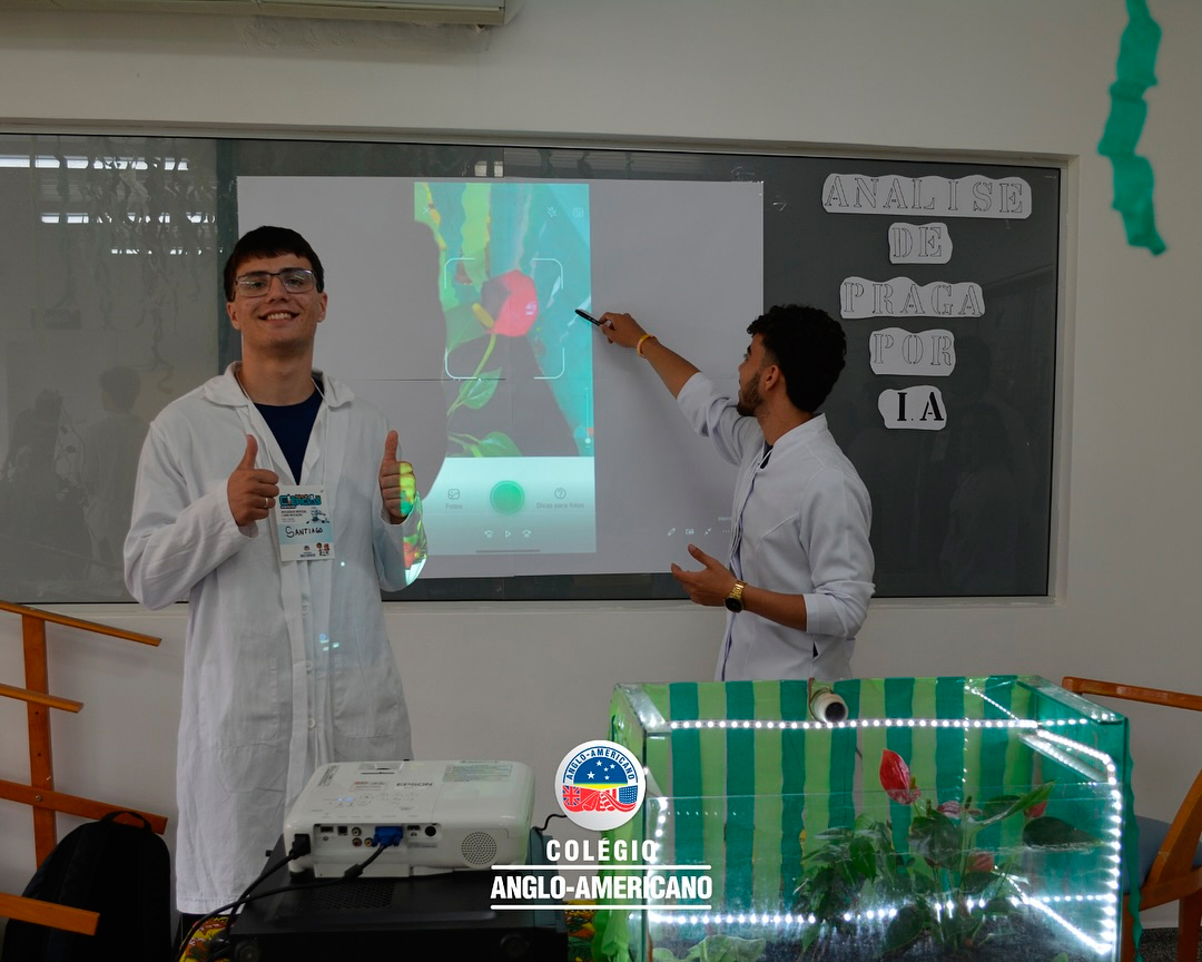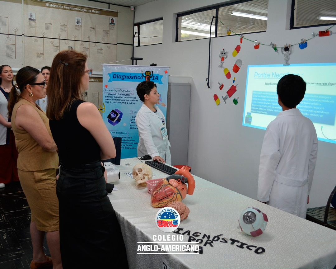 O Colégio Anglo-Americano abriu suas portas para a tradicional Feira de Ciências, um momento especial de integração entre conhecimento, curiosidade e criatividade. Este ano, o tema escolhido foi a Inteligência Artificial (IA) e suas aplicações, onde tivemos a participação dos alunos do Ensino Fundamental e Médio.